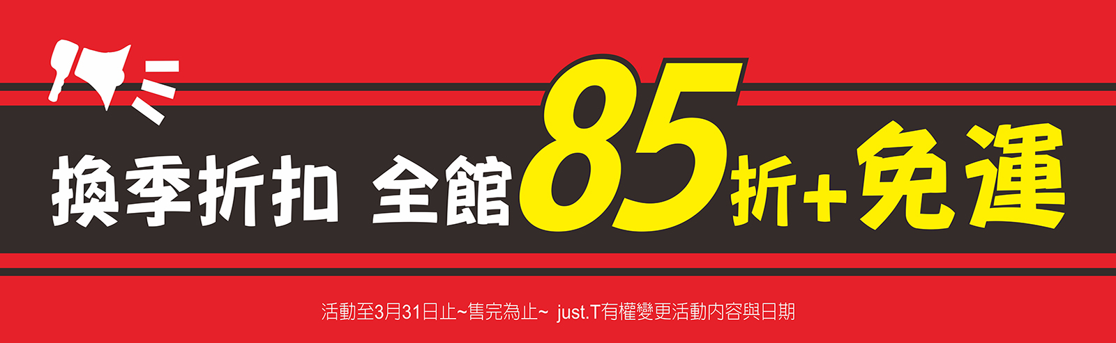 換季折扣全館85折+免運